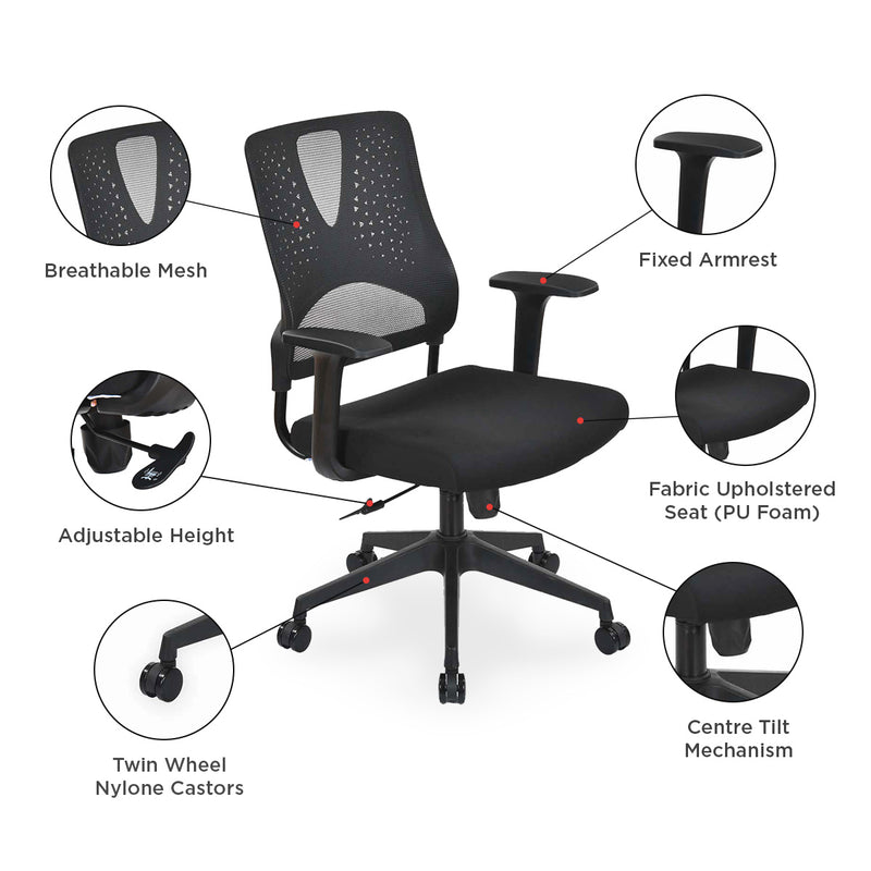 • Contemporary mid-back design with ventilated mesh for a modern and breathable look