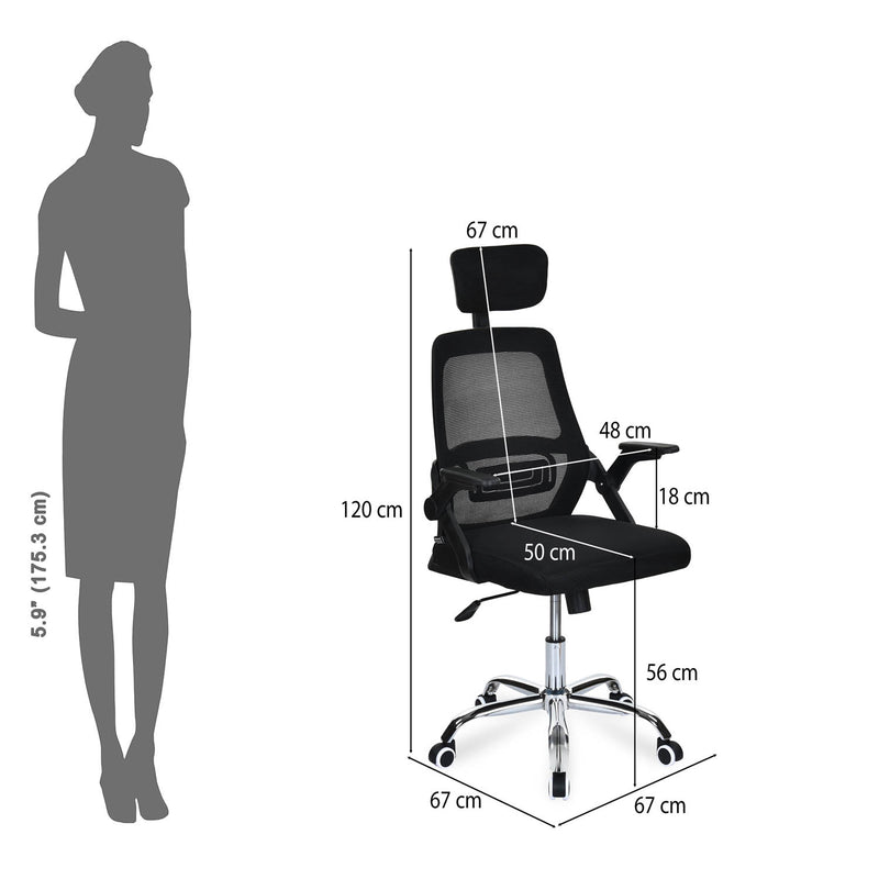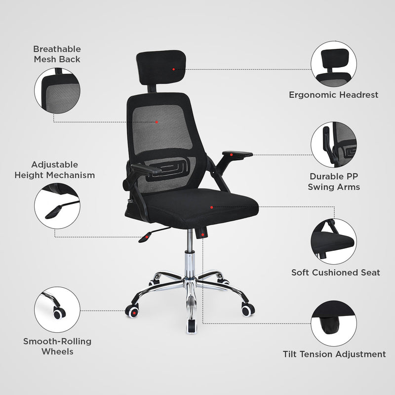 • Upgrade your workplace with this Nilkamal Vergo High Back Office Chair designed for ultimate comfort and support during long working hours. Its ergonomic high-back provides proper posture alignment, while the adjustable headrest supports the neck and upper back to reduce strain. The foam-cushioned seat and breathable mesh back ensure lasting comfort, and the swing-arm design allows smooth movement and flexibility. Built with durable PP backrest and armrests, along with a strong metal pedestal base, this chair offers lightweight strength and long-term stability. Height adjustment with an iron gas lift and tilt tension mechanism lets you customize your seating position for maximum productivity, making it perfect for offices, home workstations, and study areas.