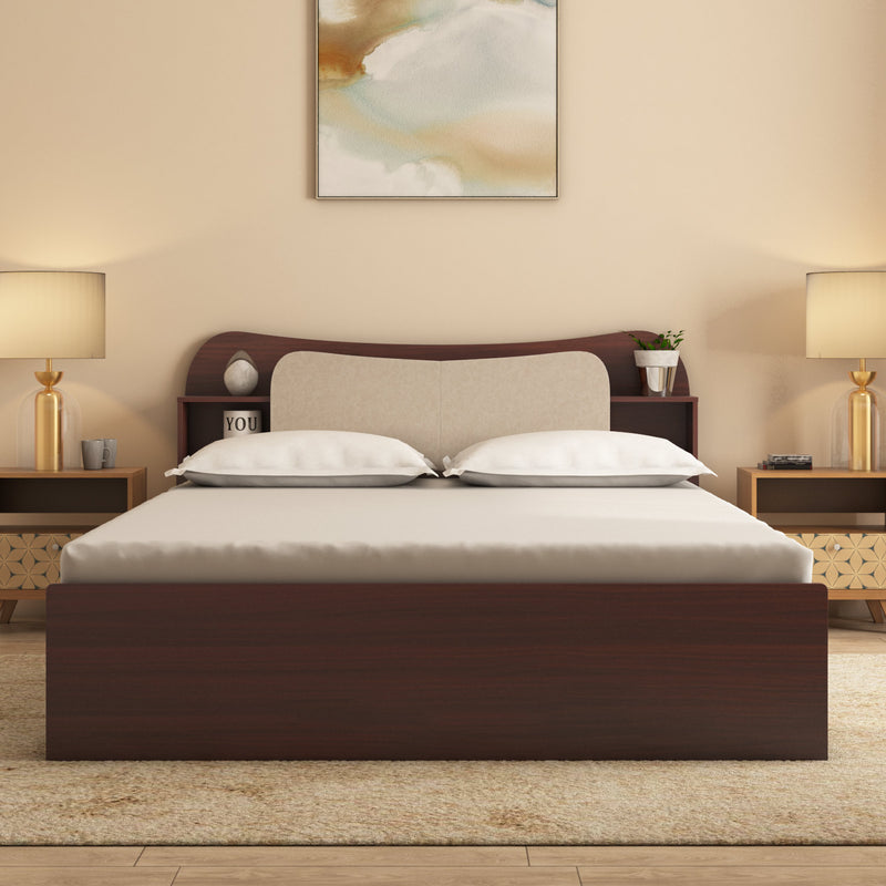 The Nilkamal Daffodil King Bed effortlessly blends contemporary style with practical features. Its sturdy engineered wood build ensures long-lasting durability, while the sleek design adds a trendy touch to your bedroom. This king-size bed provides a generous sleeping area for maximum comfort and includes convenient headboard storage with both open and closed sections to keep your essentials close at hand. Additionally, the bed features four spacious storage compartments, offering ample space to organise your belongings and maintain a clutter-free environment. This bed seamlessly combines aesthetics with utility, making it a perfect addition to any contemporary bedroom.
