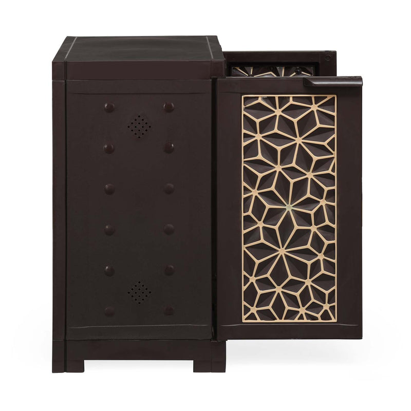 | Give your home a stylish upgrade with this Nilkamal Freedom Star Shoe Cabinet. Its modern star‑pattern design adds a fresh, decorative touch to your space, while the adjustable rods make it easy to store different types of footwear. Made from high‑quality plastic, this cabinet is strong, sturdy, and lightweight, perfect for everyday use. It stays termite‑free, rust‑free, waterproof, and corrosion‑resistant, ensuring long‑lasting durability in any room. The smooth surface is easy to clean, making maintenance quick and hassle‑free. Ideal for entryways, bedrooms, balconies, living rooms, or utility areas, this shoe cabinet keeps your footwear neatly organised and easily accessible. |