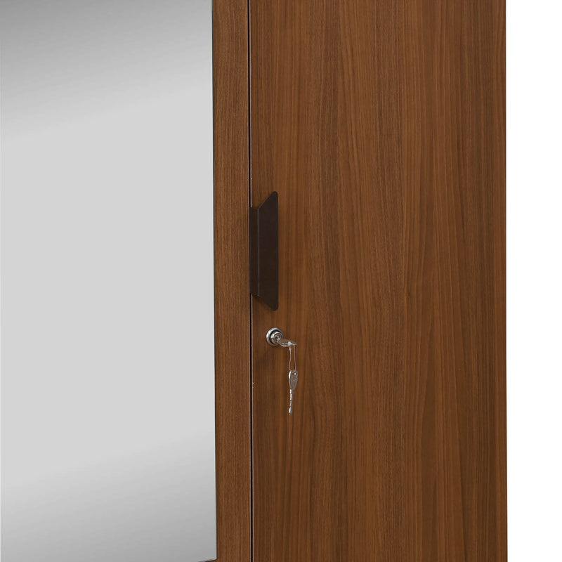 | Upgrade your bedroom with this Nilkamal Milford 3‑Door Mirror Wardrobe, designed to offer smart storage with everyday convenience. It features a full‑length mirror on the door, making daily dressing easier while saving space. The wardrobe includes 8 shelves, a hanging rod, and a lockable drawer to neatly organise clothes, accessories, and personal items. Made from strong engineered wood, it is built for durability and regular use. The smooth walnut finish is easy to maintain and adds a warm, modern touch to your room. Edge banding on all sides ensures safety, making this wardrobe a practical and stylish choice for everyday storage needs. |