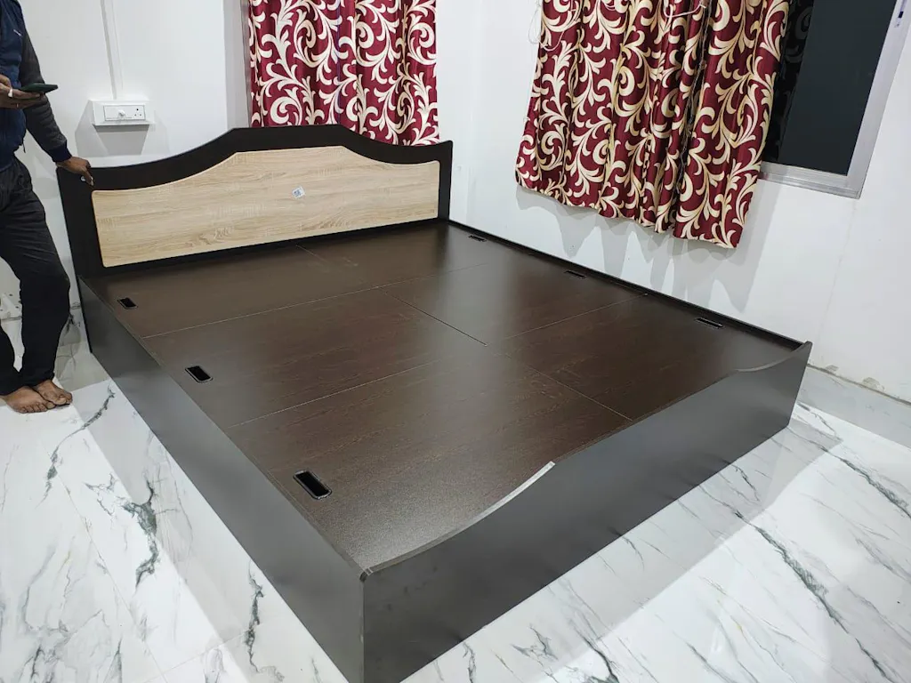 • Nothing complements Indian homes like wooden furniture. Wood exudes a sense of grandeur and warmth that transforms your space into something more inviting. The Willy King Bed is one such engineered wood bed. It combines functionality and aesthetics to improve not only your sleeping experience but also the appearance of your bedroom. While its construction ensures reliable support for your sleep, the charming dual-tone headboard makes the bed stand out. Incorporating this bed into your bedroom will only heighten its aesthetic value and comfort. The Willy Bed also takes care of your storage needs. With roomy six-compartment box storage underneath the bed, it can hide away all your belongings that would otherwise clutter your room. Pair the Willy King Bed with a 78" x 72" mattress, and you are all set to create a comfortable and sophisticated bedroom for yourself.
